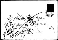 The more theoretical branch of postal art probably has its roots (left) in the Italian Futurists at the turn of the century. They actually used the mail as an artistic device. They sent letters back and forth from World War I praising the beauty of war (they were a sick bunch, what can I tell ya?) but they also used the mail imaginatively, creating innovative stationary, letterheads, logos, postcards and rubber stamps.